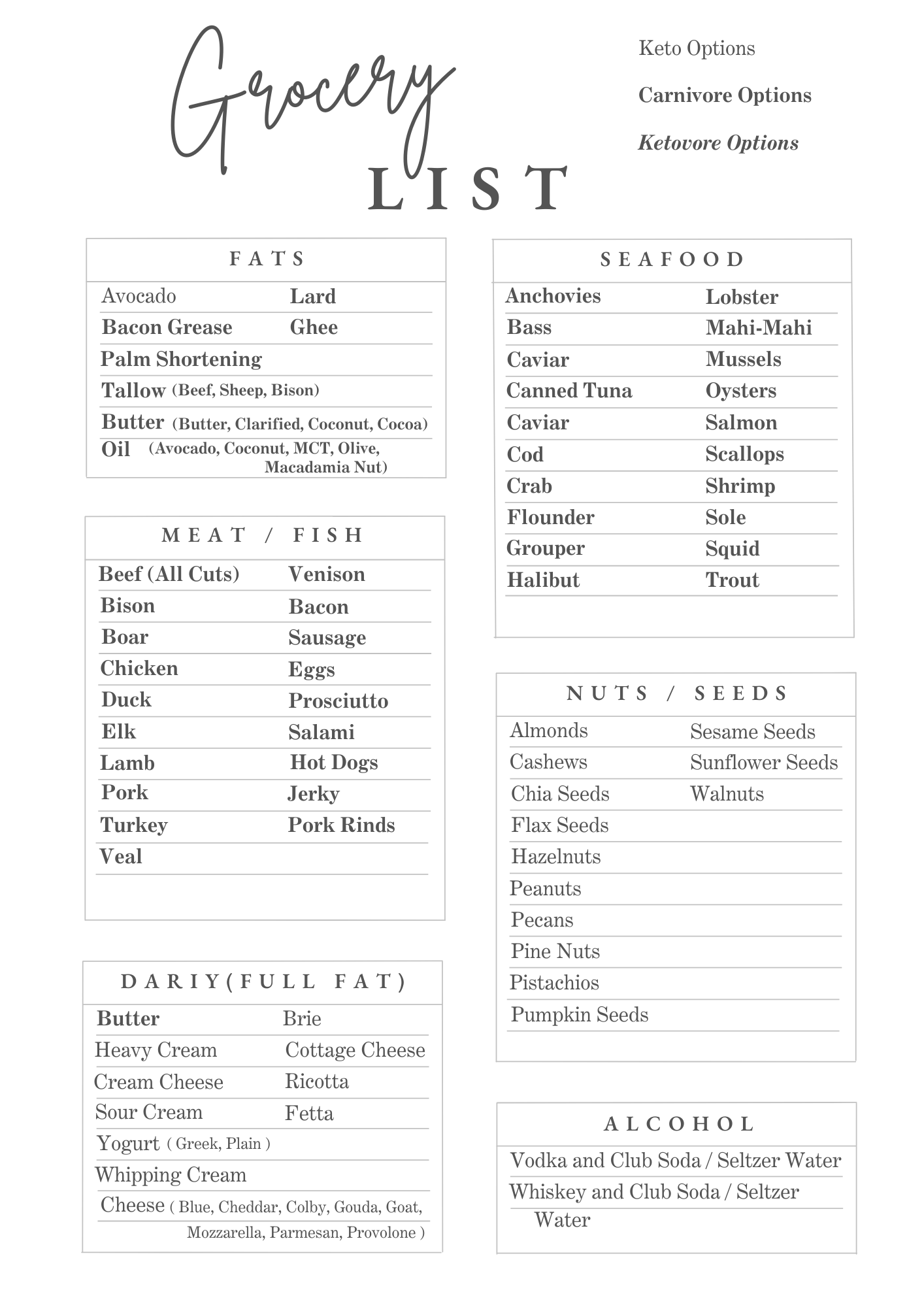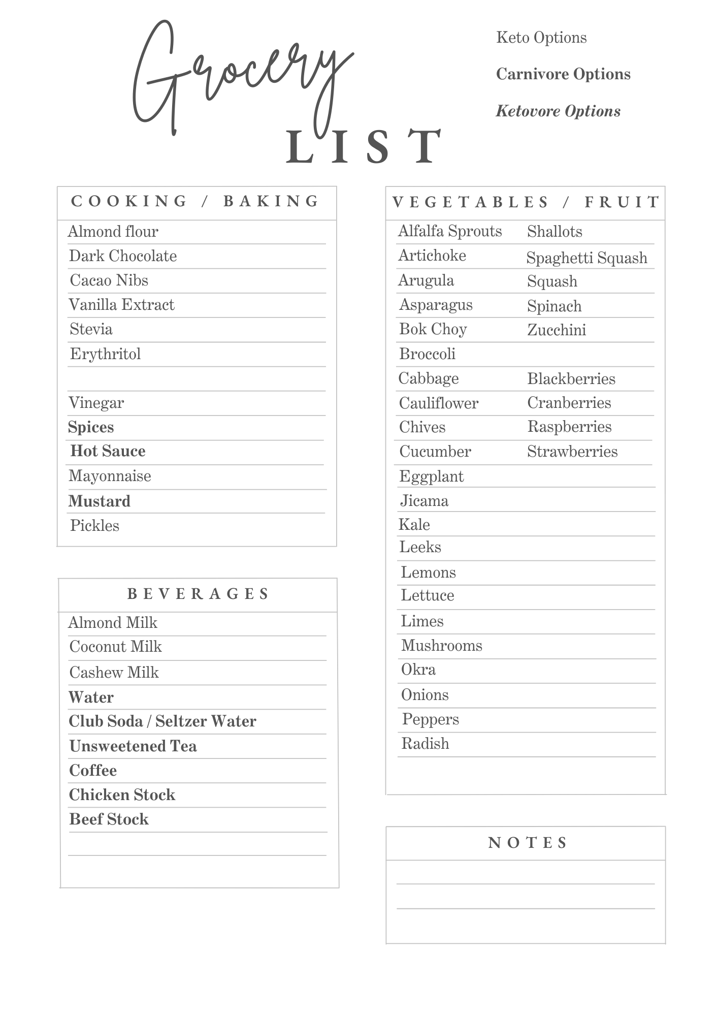 Grocery Shopping List